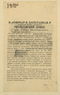 К армянам и дагестанцам в национальных легионах гитлеровской армии. От бывших легионеров, ныне советских партизан. "Вот мы уже и на свободе!.." : [Призыв переходить к партизанам]