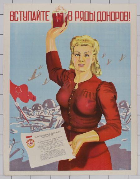 Визуальный материалВступайте в ряды доноров! : [плакат]Савеиков, В., Карикатурист, Художник[1944 или 1945]Онлайн доступ:Электронная копия Наличие: Click here to access online | :