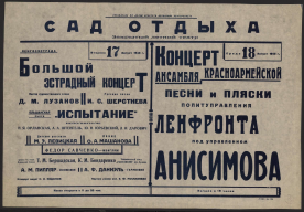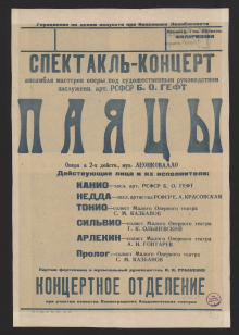 Визуальный материалДневной спектакль, Воскресенье 19 июля 1942 г. Ж. Бизе. Кармен : действующие лица: Кармен - Н.Л. Вельтер (засл. арт. РСФСР, орденоносец); Хозе - В.И. Сорочинский; Эскамильо - В.Л. Легков (засл. арт. РСФСР); Фраскита - В.И. Шестакова; Мерседес - М.А. Зюзина; Цунига - А.С. Лыжин; Чтец - Н.А. Чернявская (лауреат 1-го Ленингр. конкурса мастеров худож. слова); Испанский танец - О.Г. Иордан (засл. арт. РСФСР, орденоносец). Артисты балета: Н.В. Владимирова, М.В. Дубравицкая, Т.П. Иванова [и др.]. Постановка заслуженной артистки РСФСР орденоносца Н.Л. Вельтер. Танцы поставлены заслуженной артисткой РСФСР орденоносцем О.Г. Иордан. Художник спектакля Г.И. Цорн. Дирижер С.А. Аркин : [афиша] / Управление по делам искусств Исполкома Ленгорсовета и Ленинградский комитет по радиовещанию, Большой зал филармонии1942Онлайн доступ:Электронная копия Наличие: Click here to access online | :