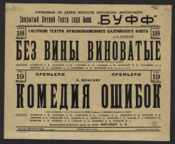 Визуальный материал Большой концерт артистов Ленинградского театра Музыкальной комедии. Участвуют заслуженные артисты РСФСР К.М. Астафьева, Л.А. Колесникова, И.В. Кедров [и др.]. Артисты: Н.И. Болдырева, Е.С. Брилль, Л.Ф. Таганская [и др.]. Солисты балета: Н.В. Пельцер, Л.М. Лидина, А.Г. Комков. Артисты балета: Т.И. Абросимова, Т.М. Бершадская, Л.А. Вишневская [и др.]. Симфонический оркестр театра Музыкальной комедии, дирижеры: М.П. Воловац, А.А. Логинов, Г.В. Фурман. Ведет концерт В.С. Васильев. Партия рояля Г.Ю. Каугер, М.П. Воловац, А.А. Логинов, Пятница 18 августа 1944 г. : [афиша] / Управление по делам искусств Исполкома Ленгорсовета, Закрытый Летний Театр сада "БУФФ" Ленинградский театр музыкальной комедии 1944 Онлайн доступ: Электронная копия Наличие: